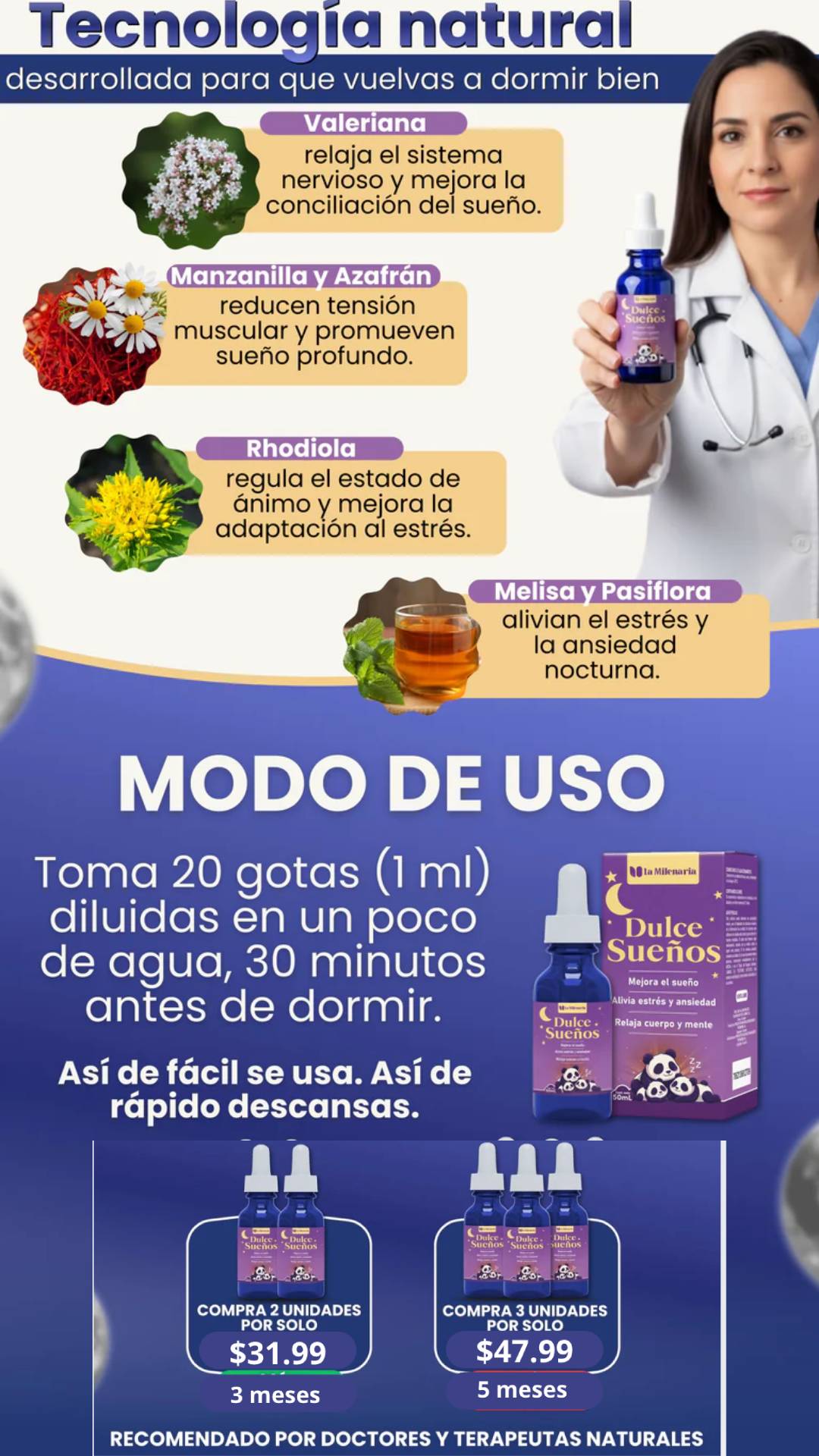 No. A diferencia de las pastillas químicas,Dulces Sueñoses 100 % natural y no contiene sustancias que alteren el sistema nervioso ni generen dependencia.