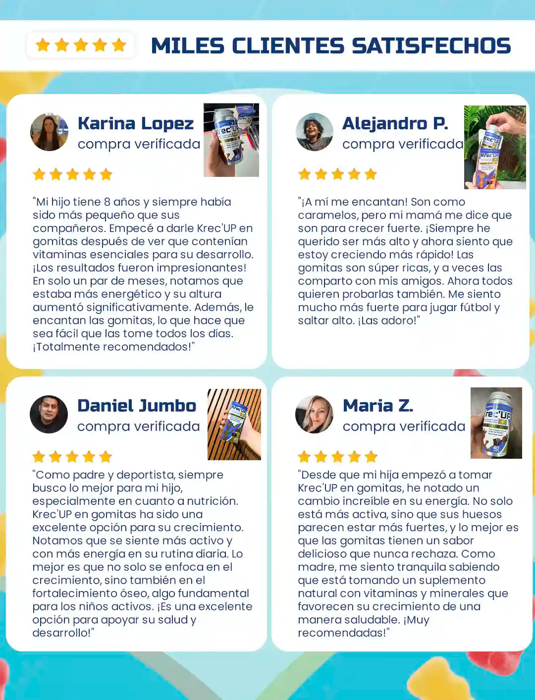“Mi hijo ama sus gomitas Krec’UP, es la única forma en que no olvida su apoyo diario.” – Mamá de Mateo, 9 años