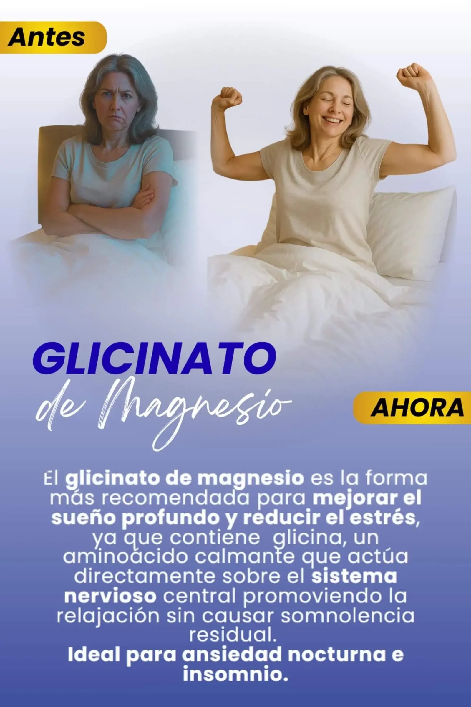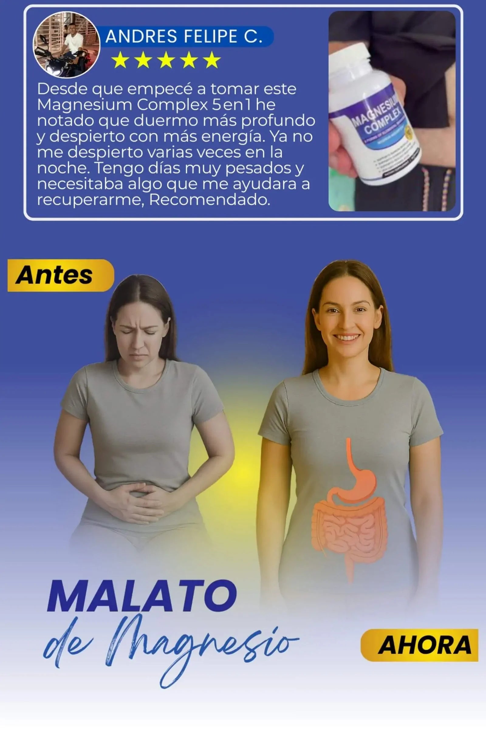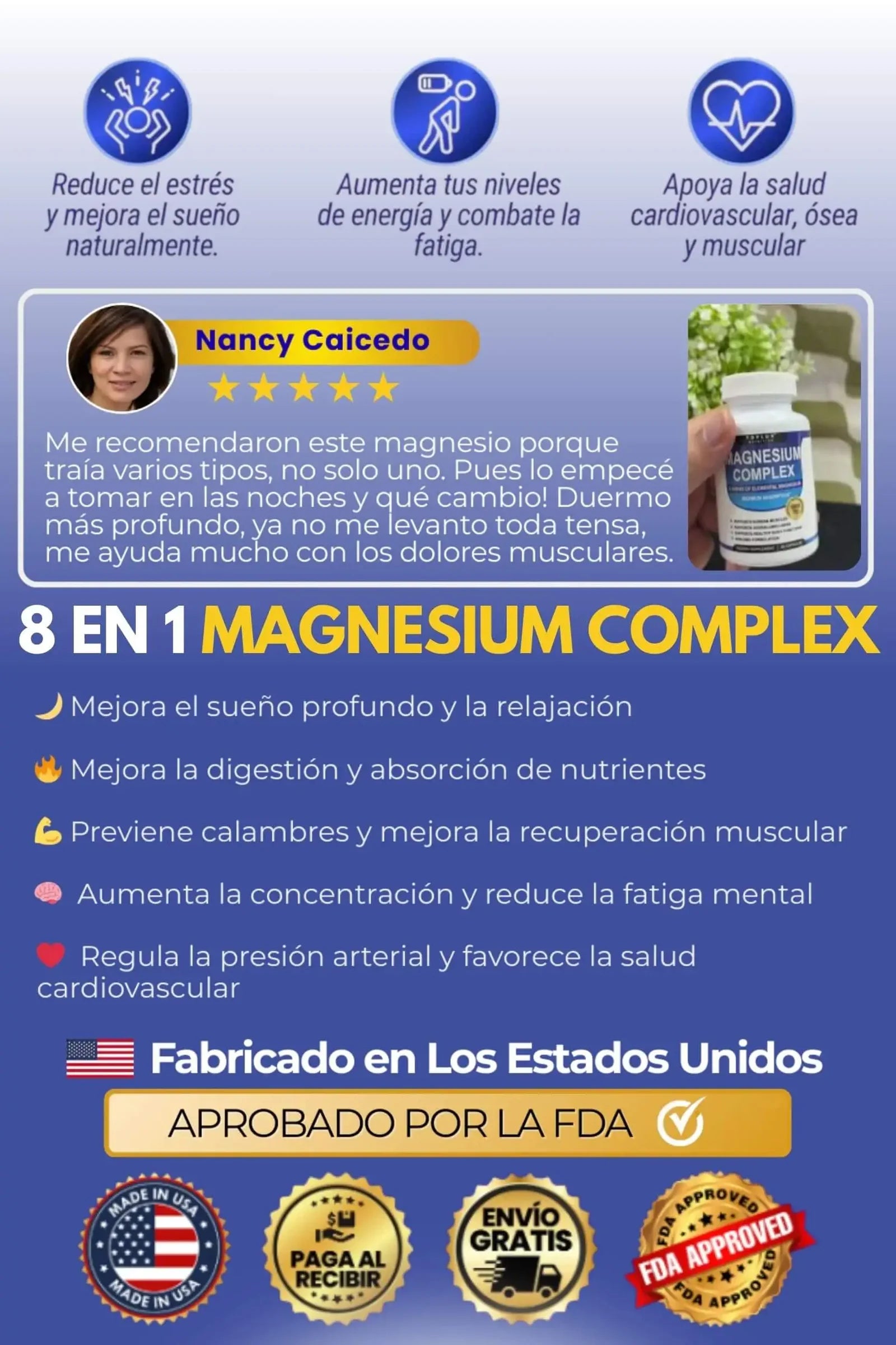 Disfrute de un descanso más profundo y rejuvenecedor con nuestro Complejo de Magnesio, un apoyo natural. Al calmar el sistema, desempeña un papel fundamental para promover un descanso nocturno tranquilo, permitiendo que su cuerpo obtenga el descanso que necesita para una salud óptima.
