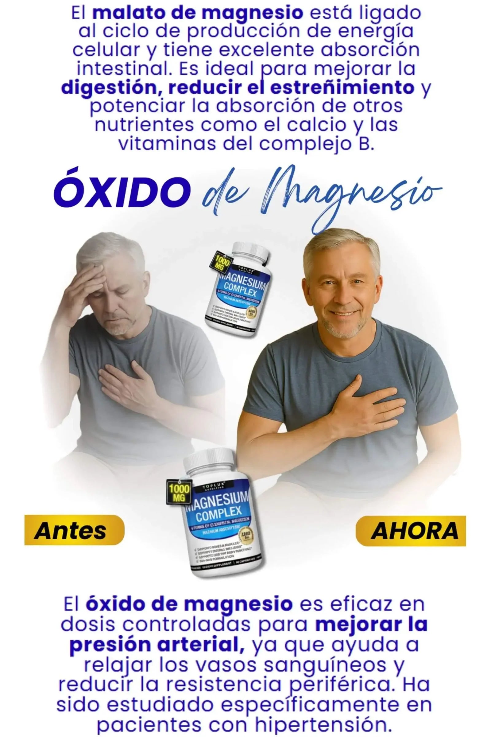 Este complejo de magnesio presenta una mezcla de 8 magnesio esenciales formas, incluyendo óxido, glicinato, malato, taurato, citrato, carbonato, aspartato y orotato, para respaldar tasas de absorción y salud únicas beneficios, asegurando un apoyo total para la salud muscular, nerviosa y ósea.